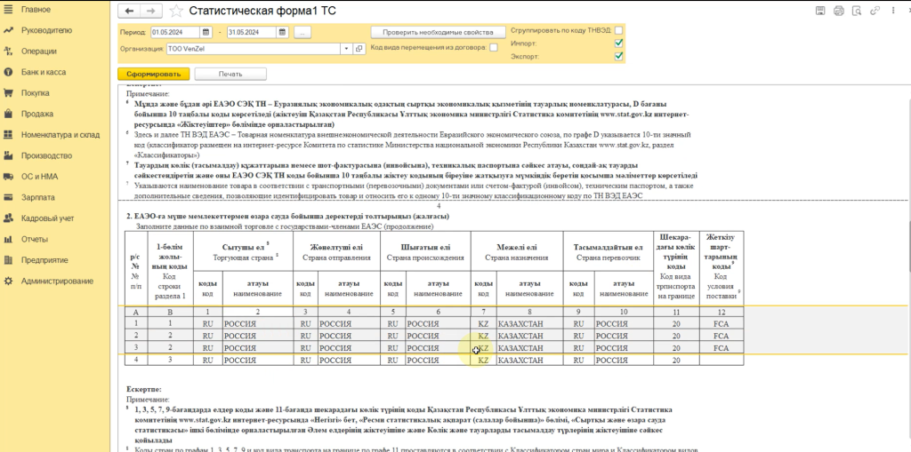 Работаете в «1С:Бухгалтерия для Казахстана» и осуществляете экспорт и\или импорт с государствами-членами Евразийского экономического союза? Ежемесячно сдаете отчет?