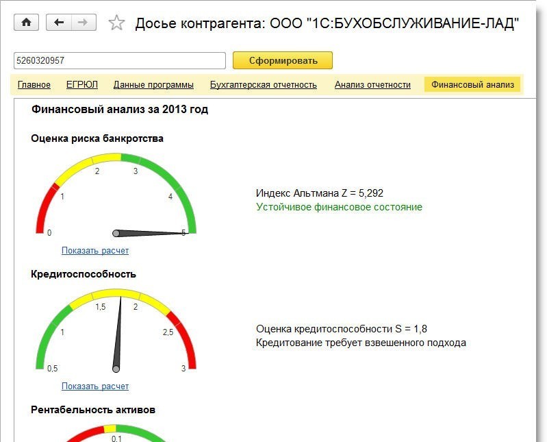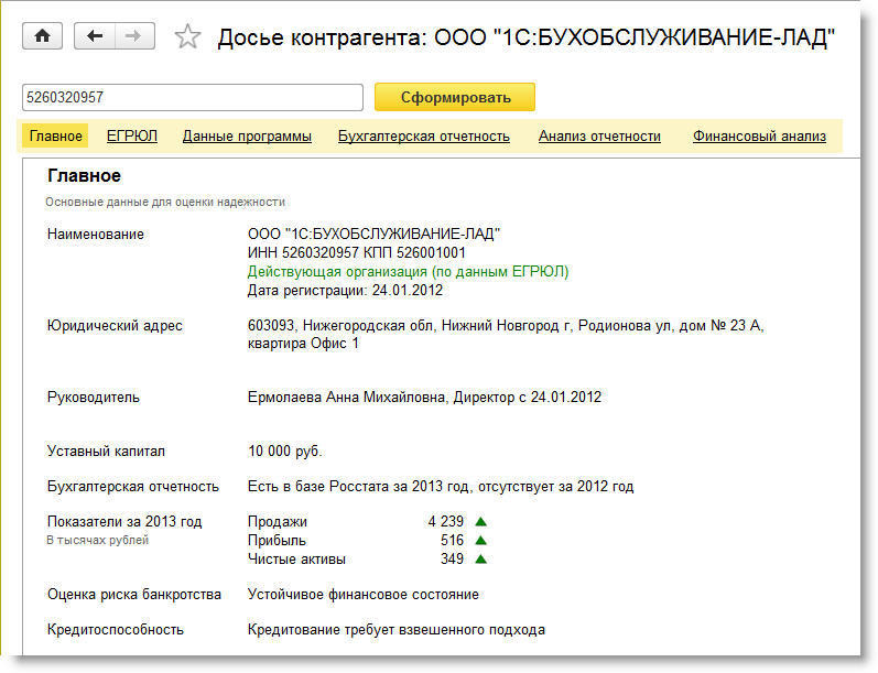 У вас есть актуальные данные о контрагентах из ЕГРЮЛ, Росстата, бухгалтерской отчетности, финансового анализа: риск банкротства, кредитоспособность, рентабельность активов и др.